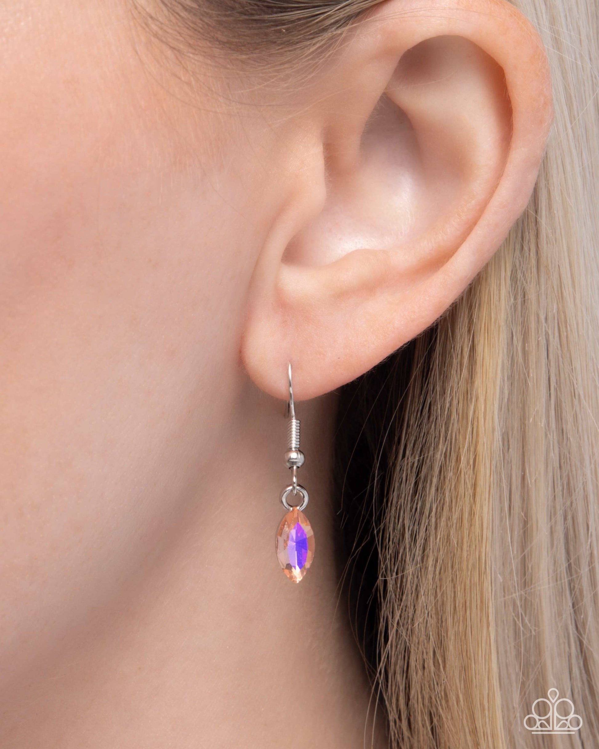 Blossoming Baseline - Orange Light Peach & Green Rhinestone Flower Necklace Paparazzi N3565