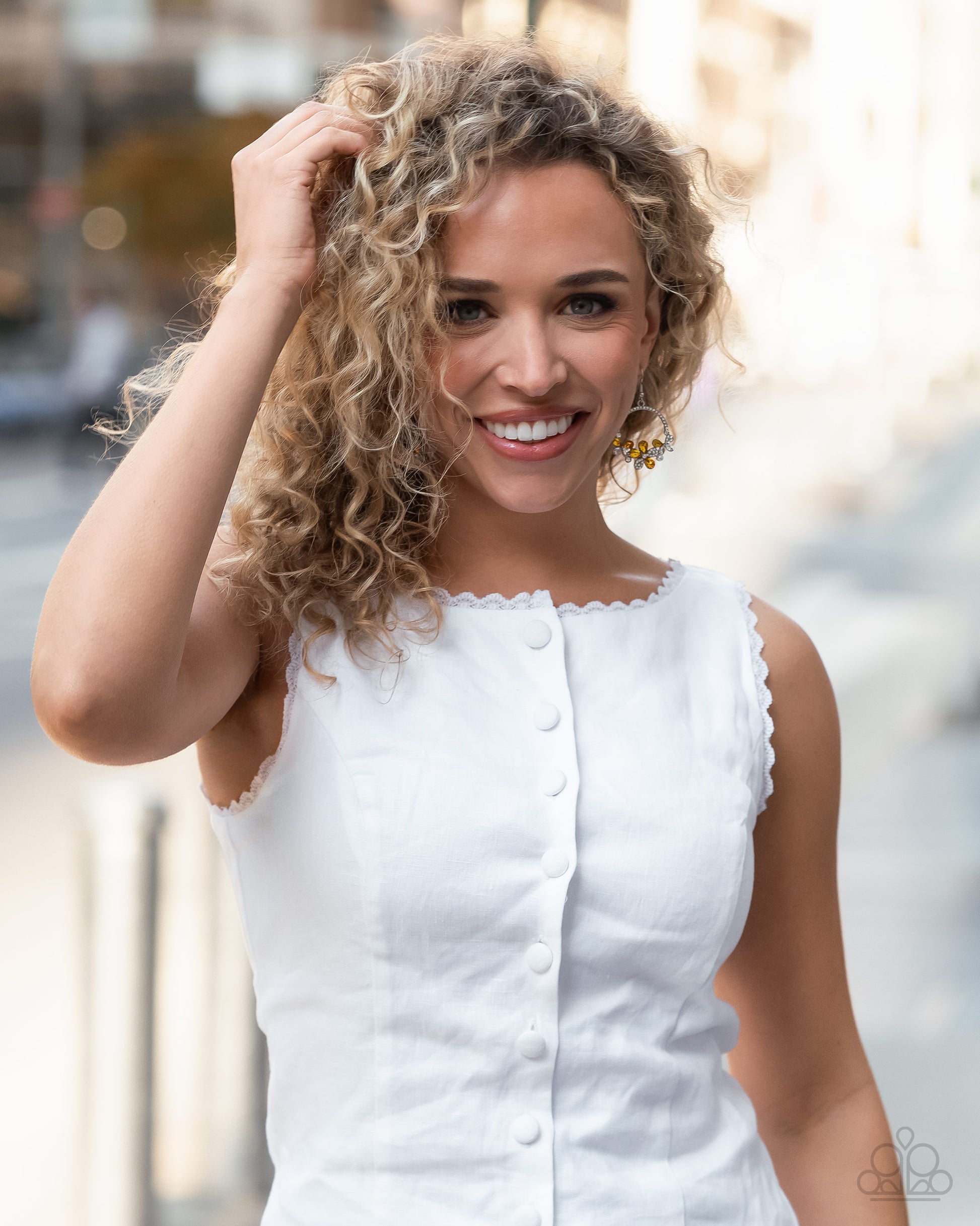 Bouquet Bliss - Yellow & White Butterfly Flower Earring Paparazzi E2932