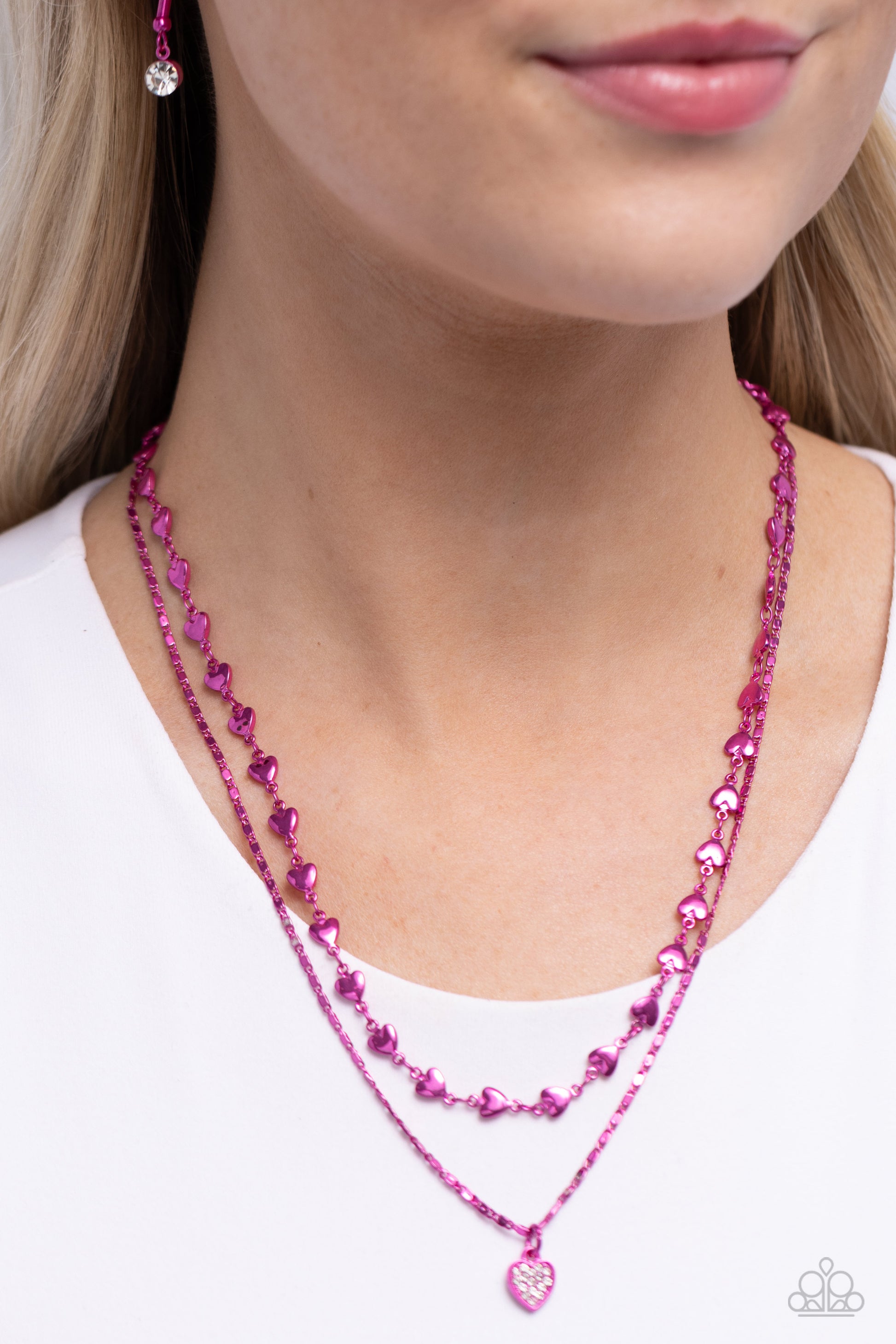 Cupid Combo - Pink Fuchsia Chain White Rhinestone Heart Necklace Paparazzi N3002