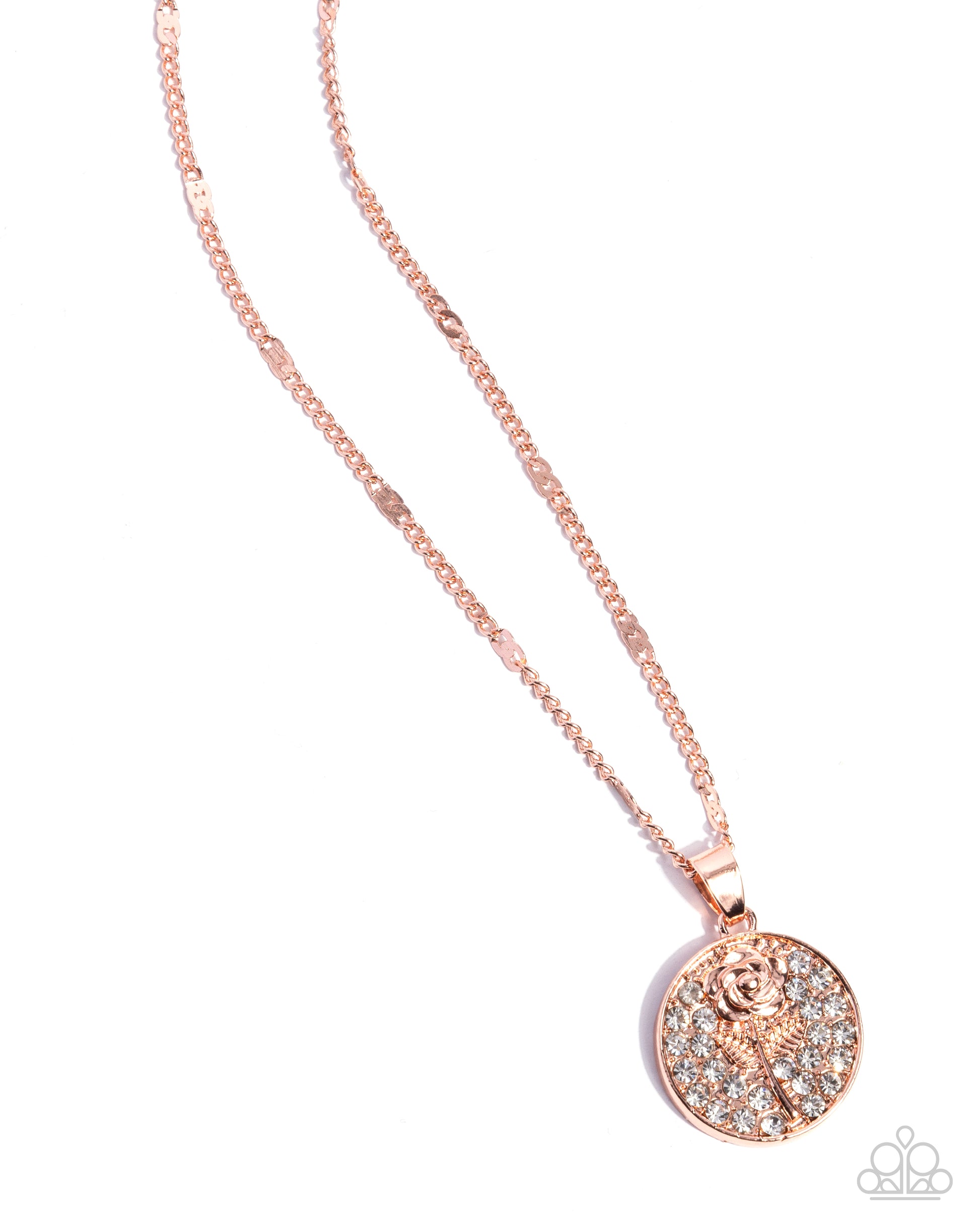 CUTIE and the Beast - Copper - Shiny Copper Rose & White Rhinestone Pendant Necklace Paparazzi N3228
