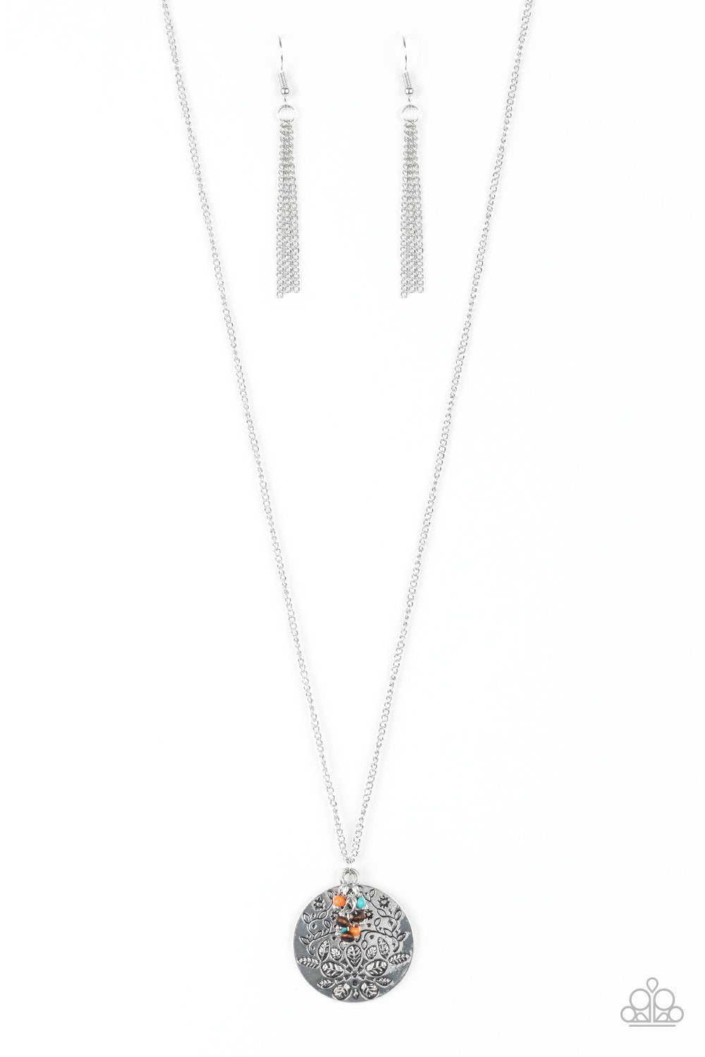 Desert Abundance Multi Blue Orange Brown Floral Embossed Necklace Paparazzi N0053