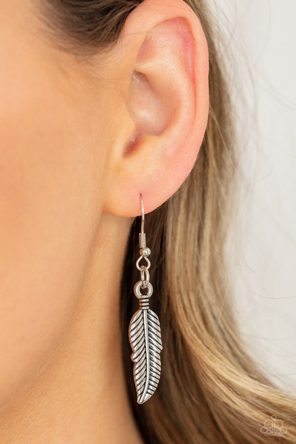 A brown teardrop stone dots an ornately scalloped silver frame that adorns the center of a curved metal plate that links to the bottom of an oversized curved studded plate. Mismatched silver feathers trickle from the bottom of the stacked pendant, creating a whimsical fringe. Features an adjustable clasp closure.