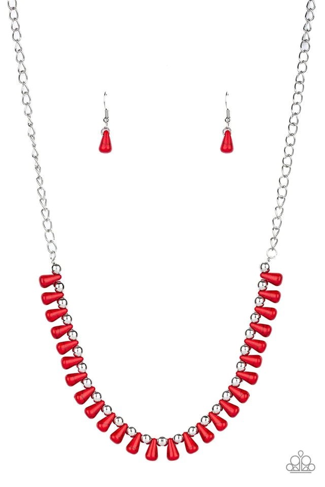 Extinct Species Red Teardrop Santa Fe Style Stone Necklace Paparazzi N0960