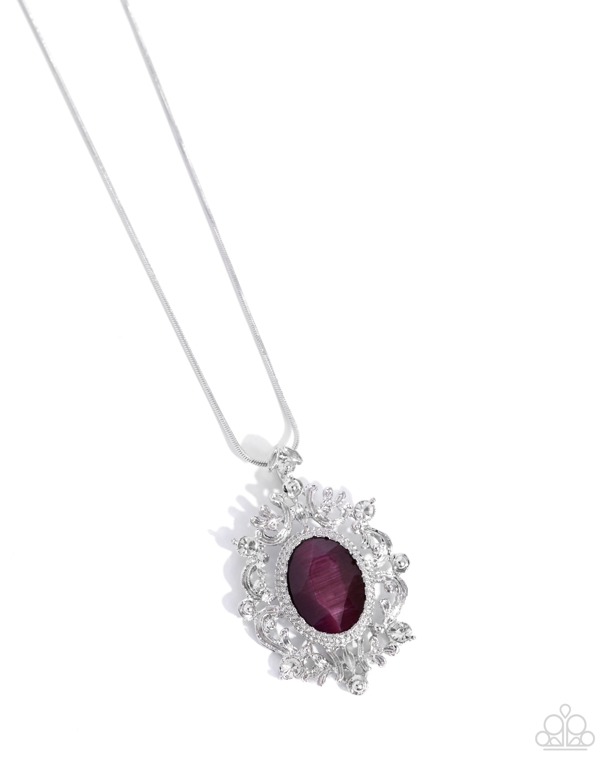 Family Crest - Purple Cat's Eye Stone & White Rhinestone Necklace Paparazzi N3316