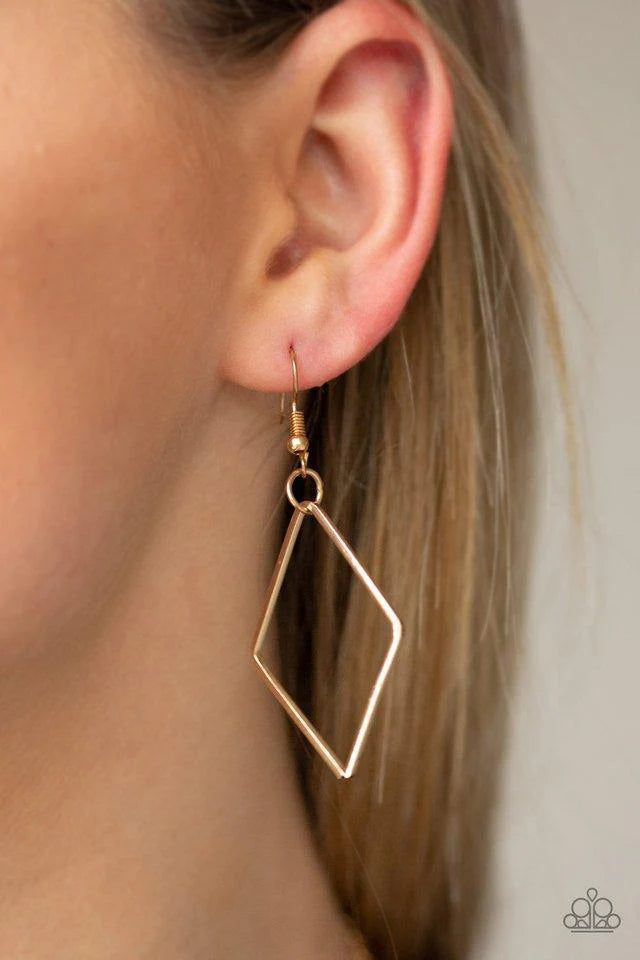 Fashion Fave Gold Diamond Shape Frame And Chain Necklace Paparazzi N0098