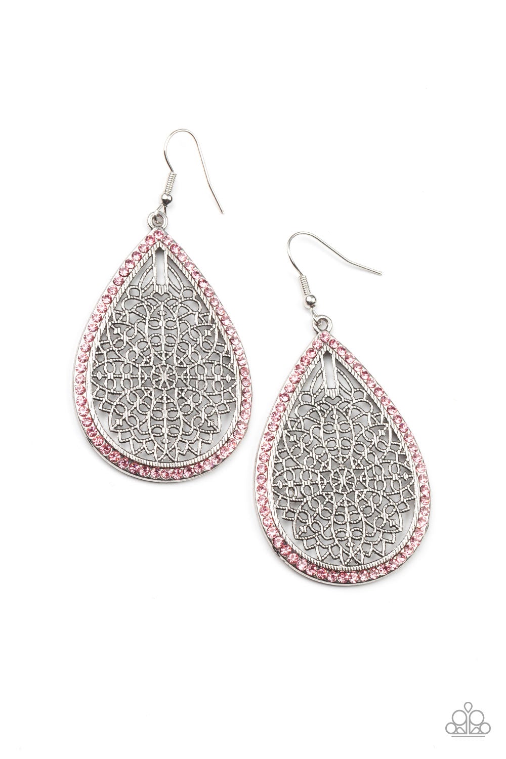 Fleur de Fantasy Pink Rhinestone Oversized Silver Teardrop Earring Paparazzi E0365