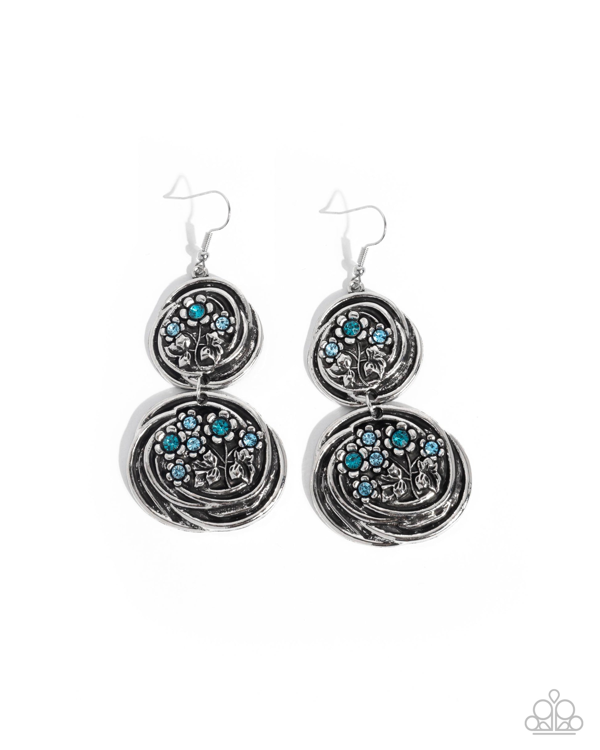 Garden Pavement - Blue Aquamarine & Zircon Rhinestone Silver Earring Paparazzi E2834