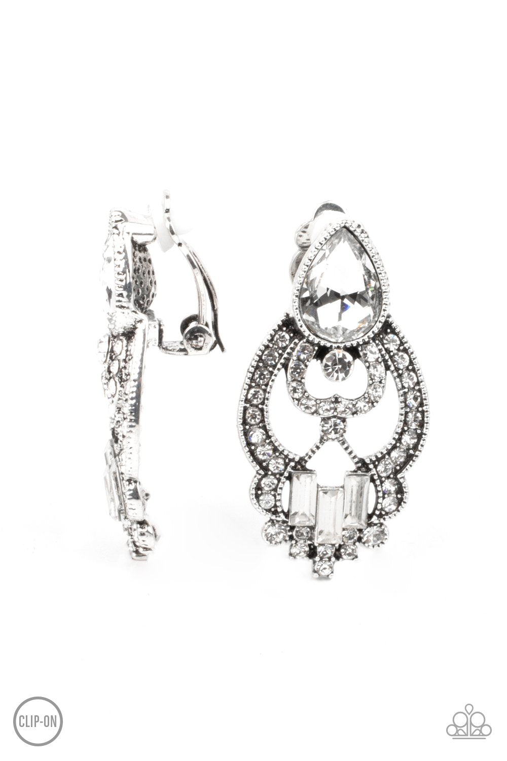 Glamour Gauntlet Silver Clip-On Earring Paparazzi E0129