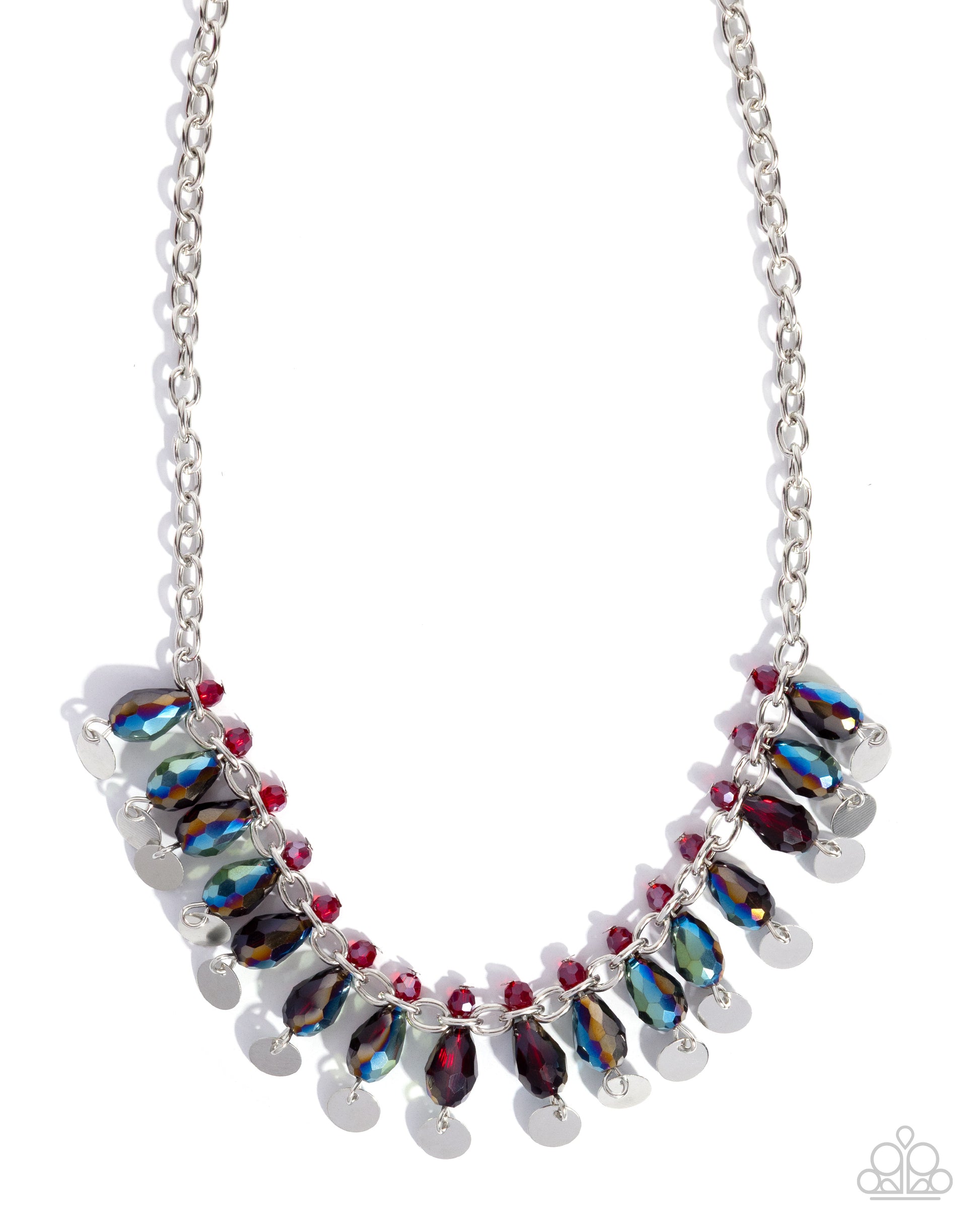 Glimpses Of Glitz Red UV Shimmery Teardrop Bead & Silver Disc Necklace Paparazzi N3507