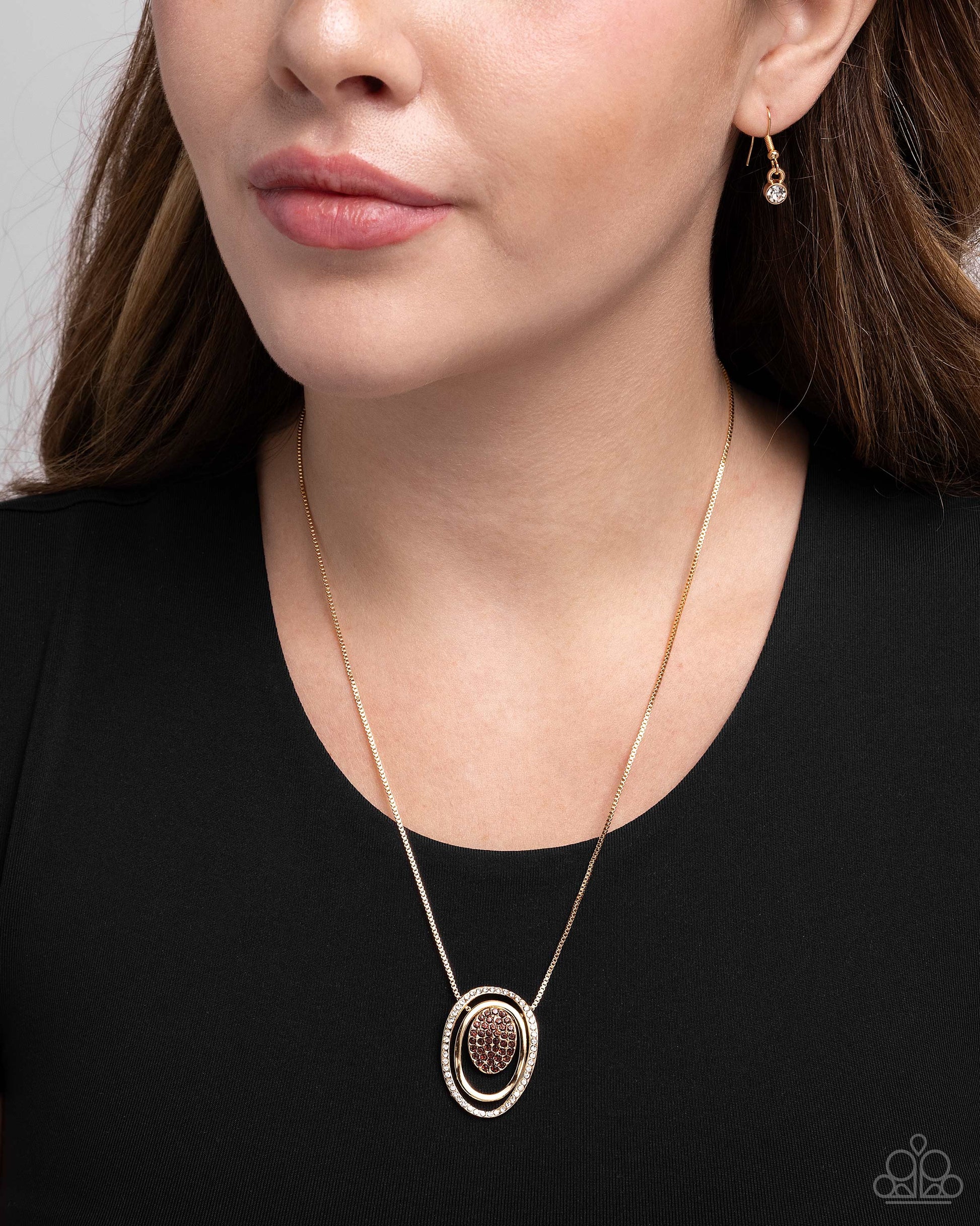Glistening Grade - Brown Tea Rhinestone Gold Necklace Paparazzi N2841