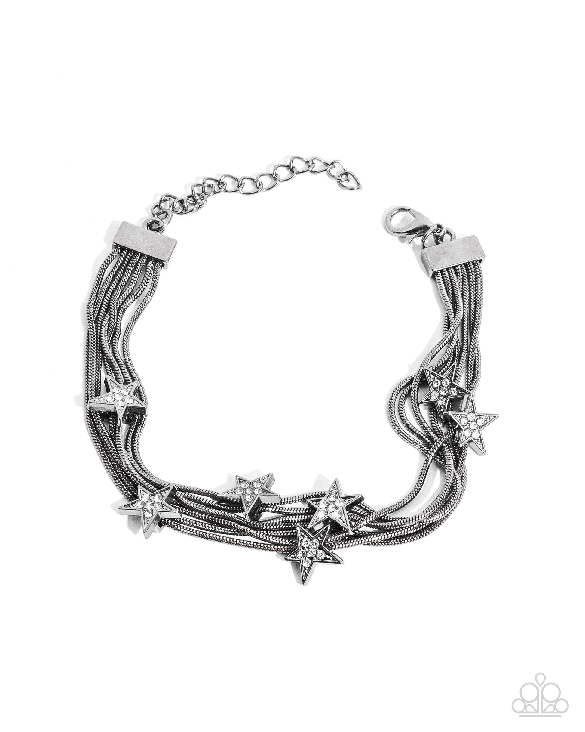 Guest Star - Black Gunmetal White Rhinestone Star Clasp Bracelet Paparazzi B0415