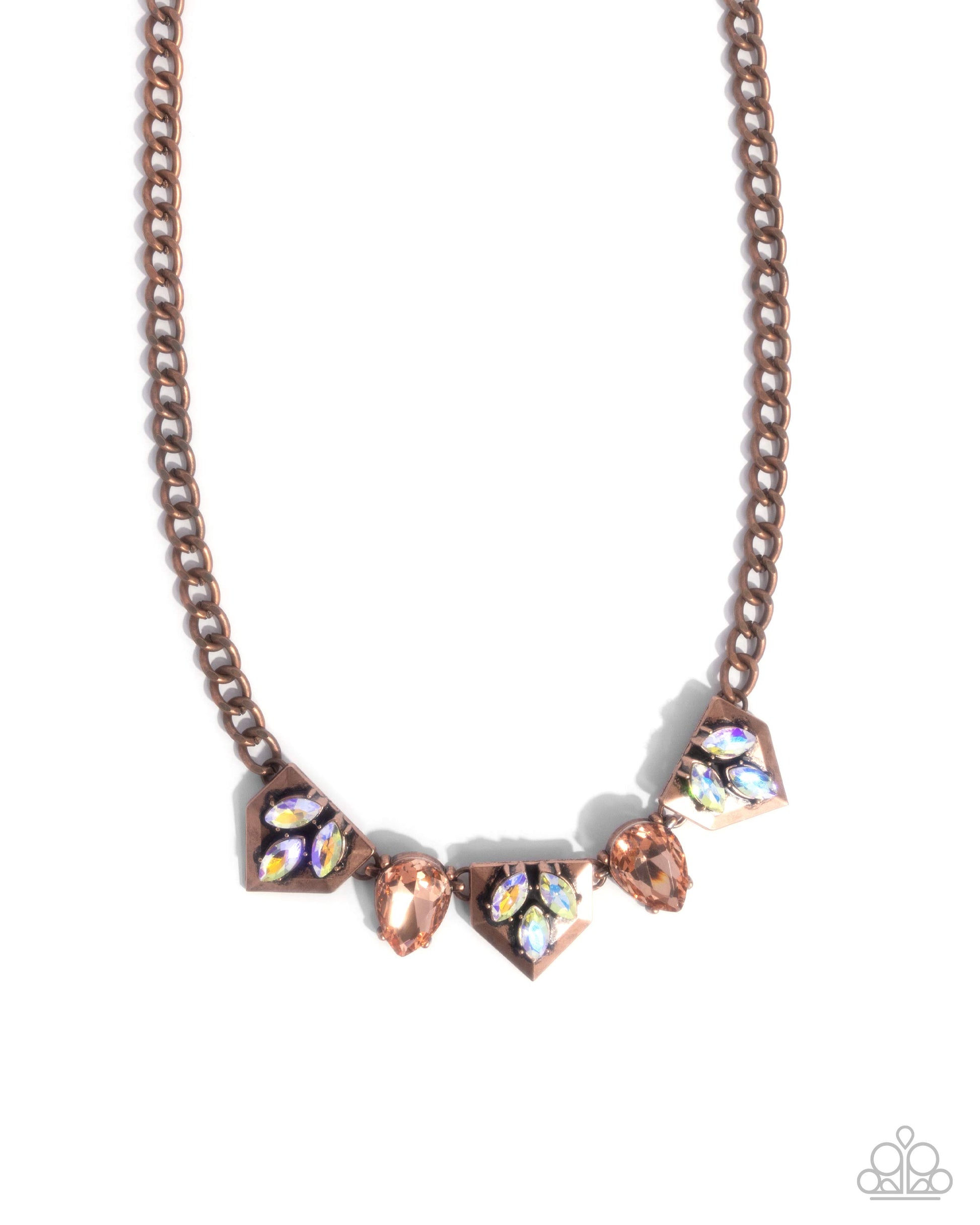 Home Place Haute - Copper Curb Chain Peach Gems & Iridescent Rhinestone Necklace Paparazzi N3062