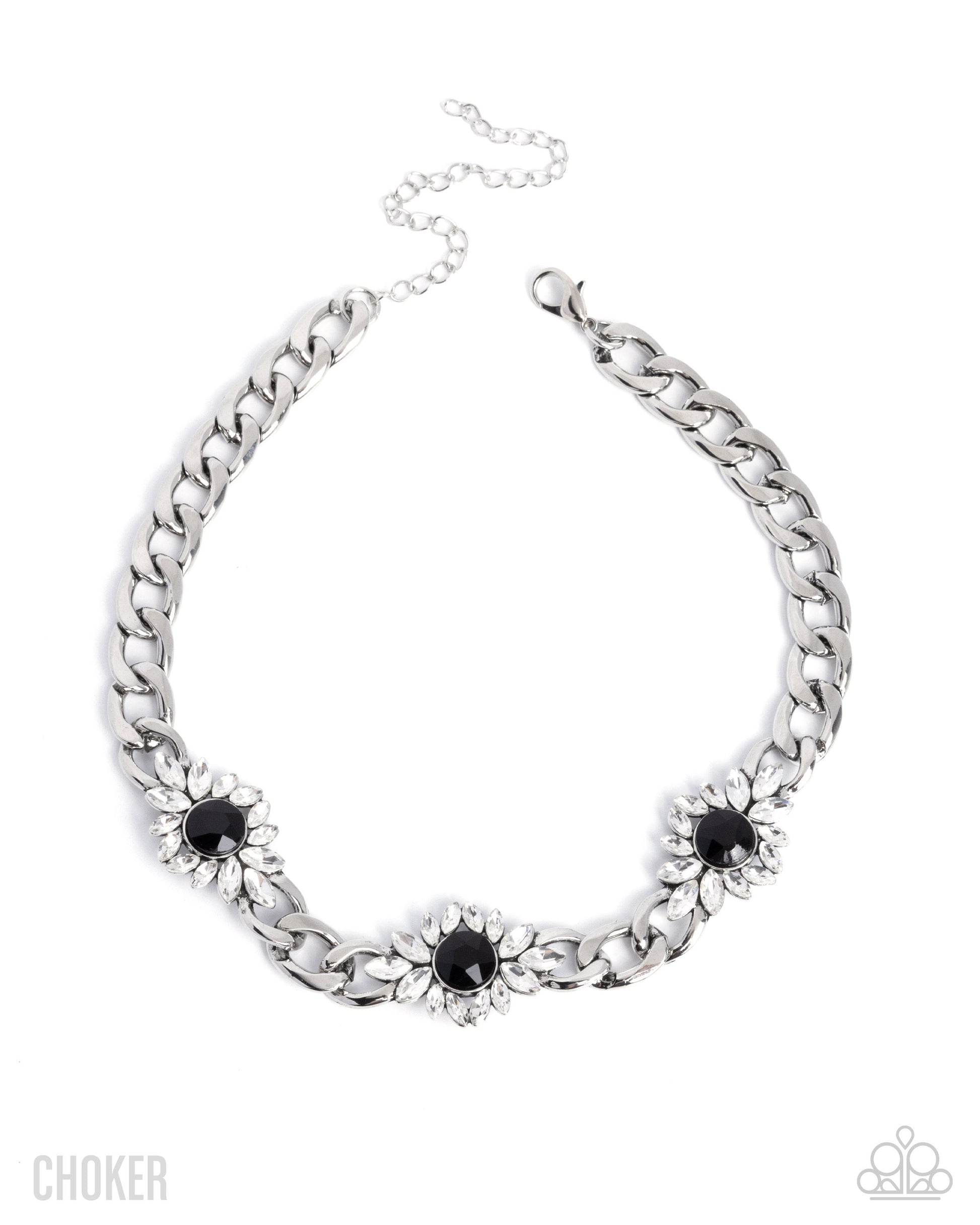 Paparazzi Industrial Intro - Black & White Gem Silver Sunburst Choker Necklace N3743