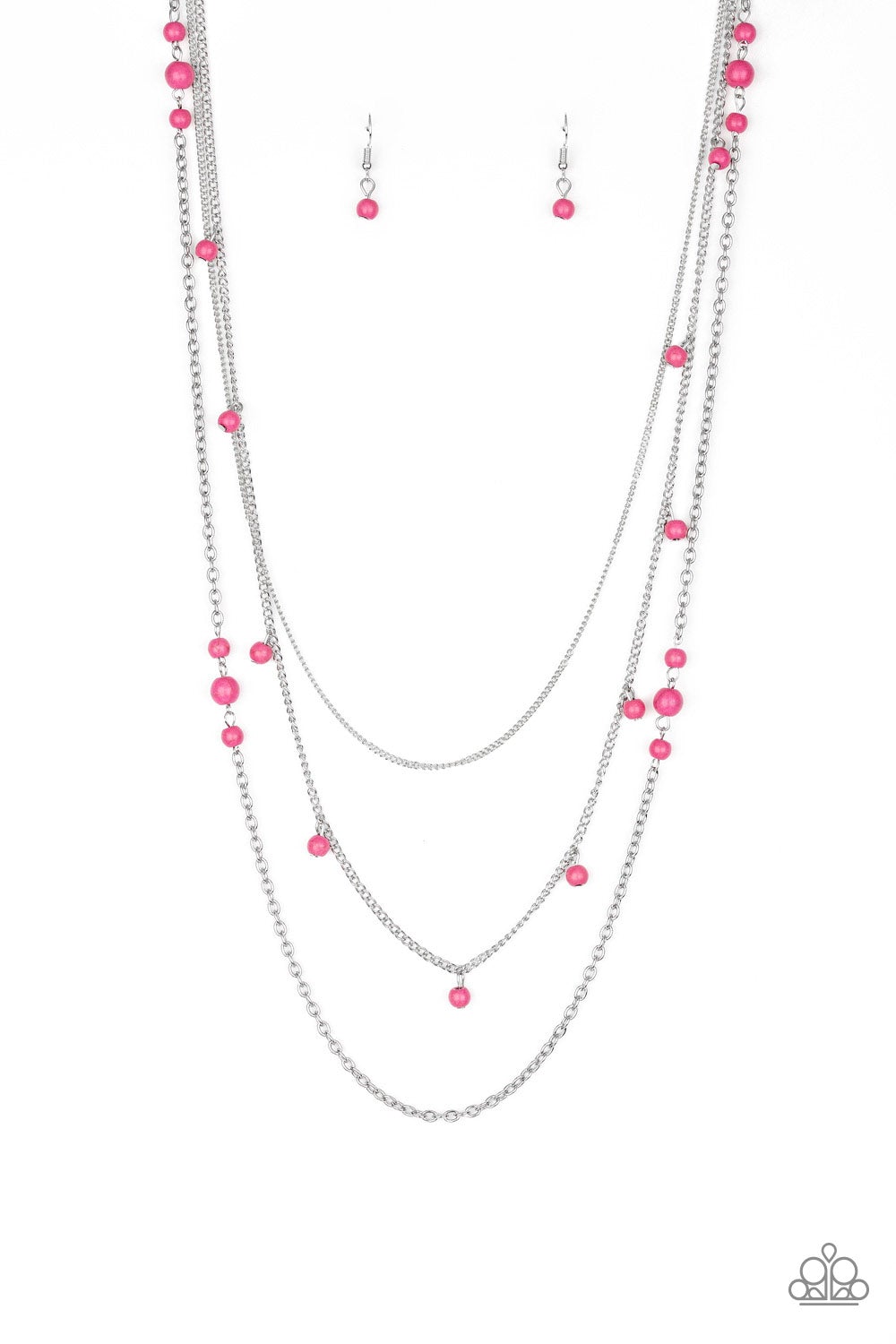 Laying the Groundwork - Paparazzi - Pink Cracked Stone Layered Silver Necklace