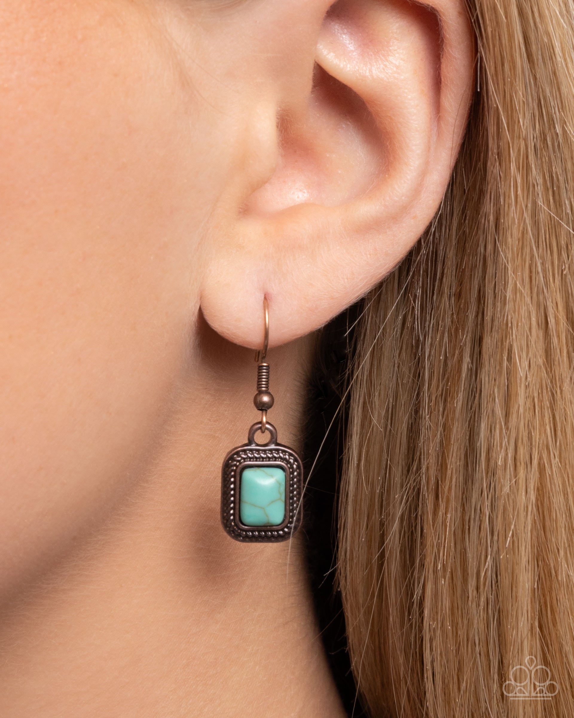 Pressed in a rope-textured, rounded antiqued copper frame, a rounded rectangular turquoise stone glides along a classic copper rope chain for a spot of Southwestern color. A highly detailed antiqued copper longhorn skull pendant gives way below the turquoise stone for a Western finish. Features an adjustable clasp closure. As the stone elements in this piece are natural, some color variation is normal.