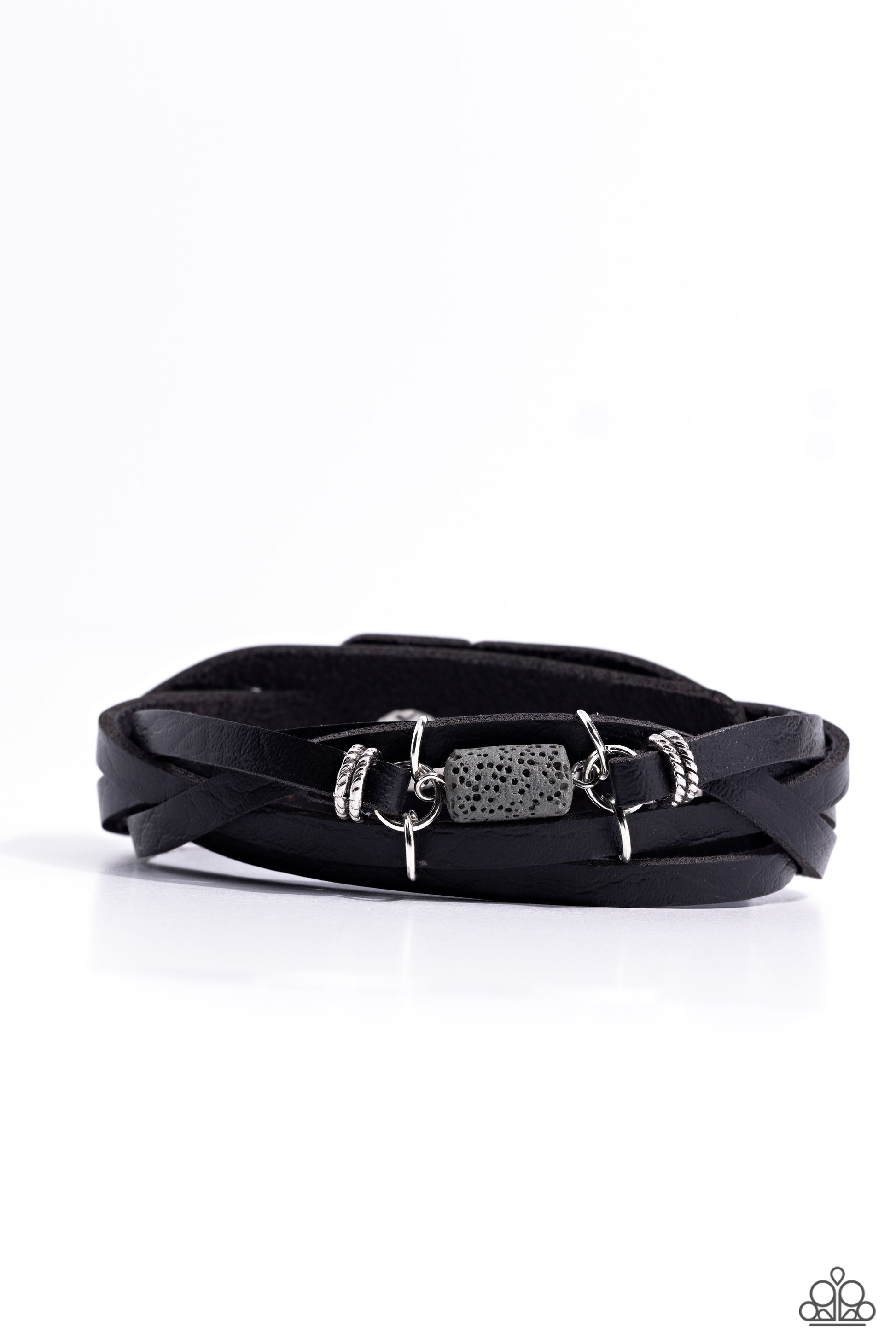 Metamorphic Monument - Black Braided Leather & Gray Lava Rock Urban Snap Bracelet Paparazzi B2081