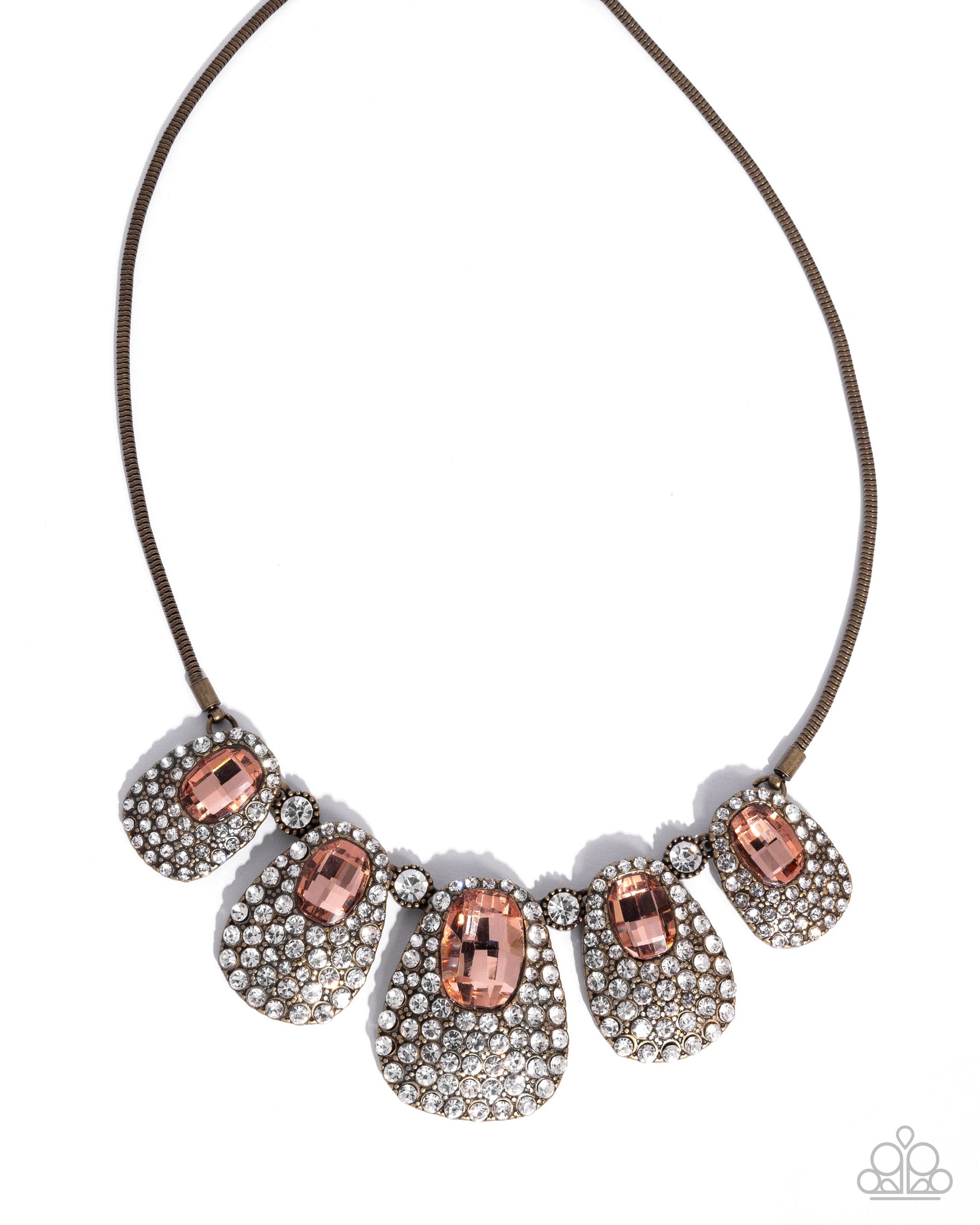 Paparazzi Oval Ovation - Brass, White & Peach Gem Necklace