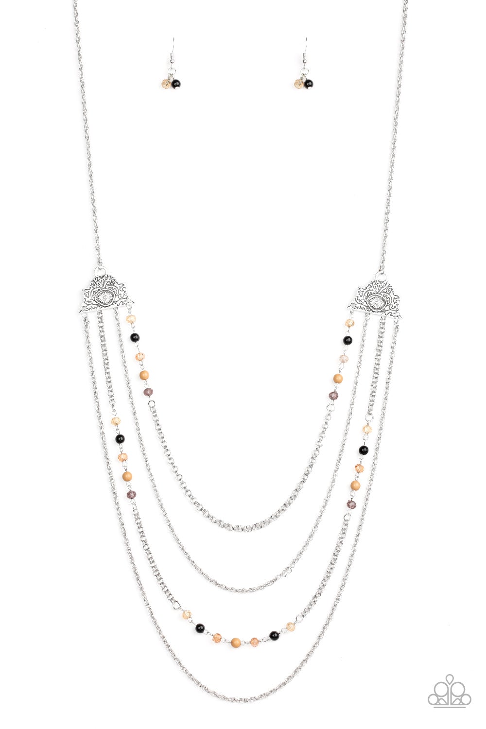 Pharaoh Finesse Multi Silver Brown, Black Bead Necklace Paparazzi N0147