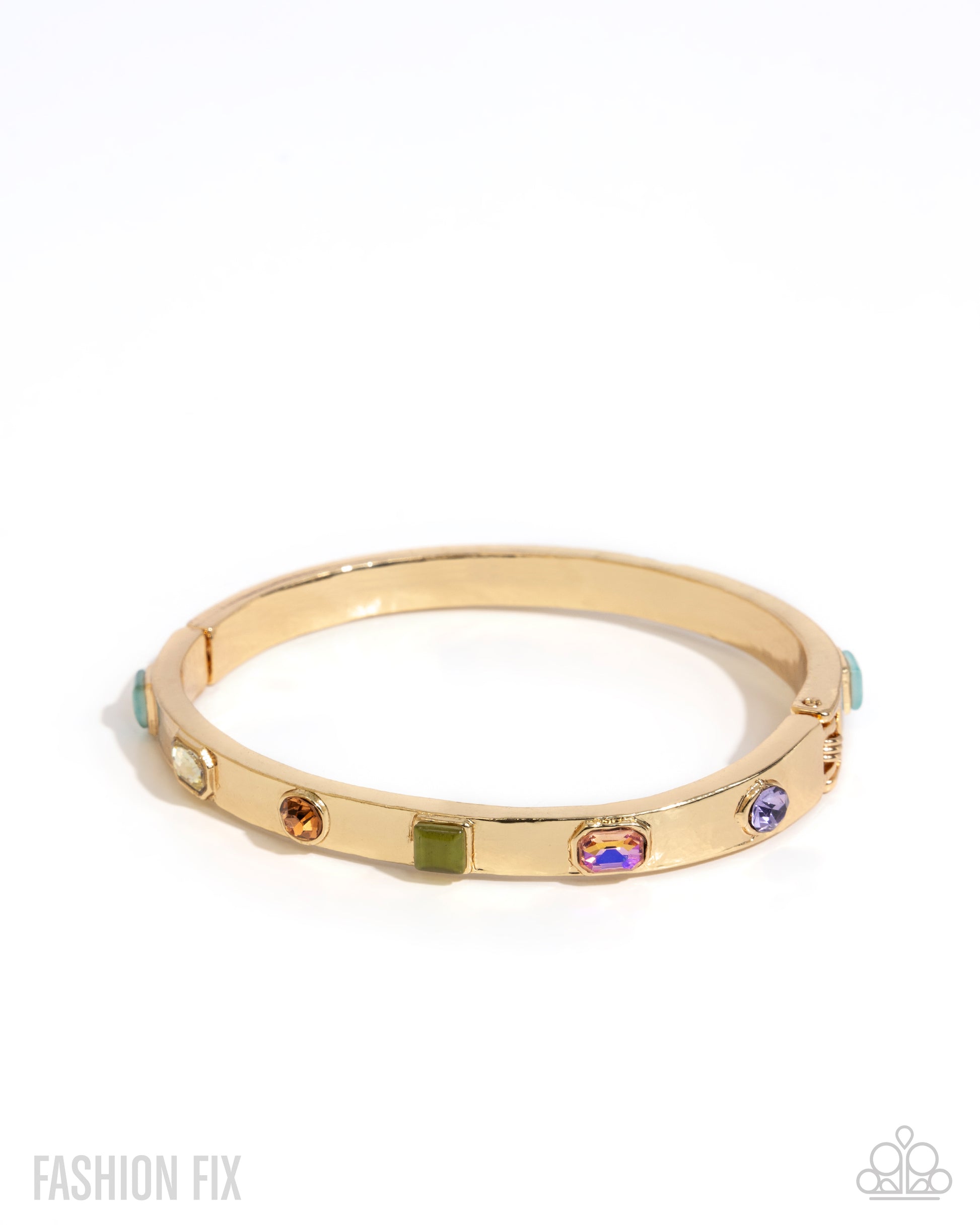 Proper Poise - Multicolored Gem, Rhinestones & Cat's Eye Stone Gold Stretch Bracelet Fiercely 5th Avenue May 2025 Paparazzi B2264