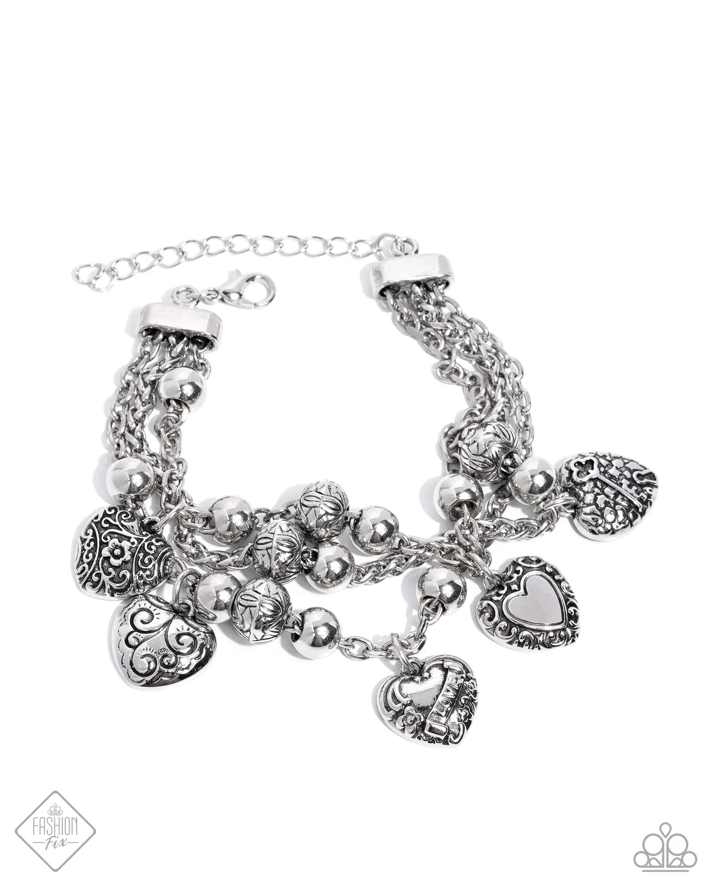 Romantic Relationship - Silver Heart Bracelet Glimpses Of Malibu Fashion Fix August 2024 Paparazzi B2411