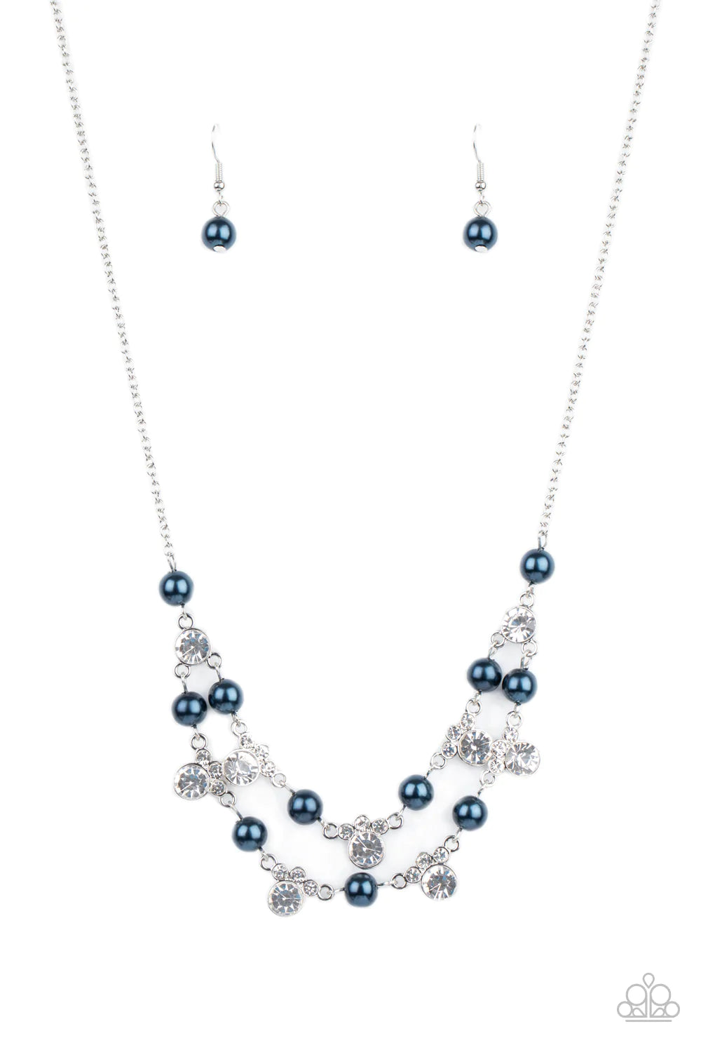 Royal Announcement Blue Pearl White Rhinestone Necklace Paparazzi N0954