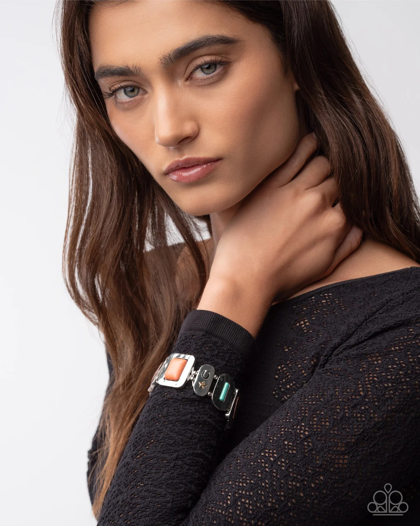 Rustic Refresh - Multi Color Stone Joy Heart Silver Stretch Bracelet Santa Fe Style Paparazzi 2025 Convention Exclusive B2334