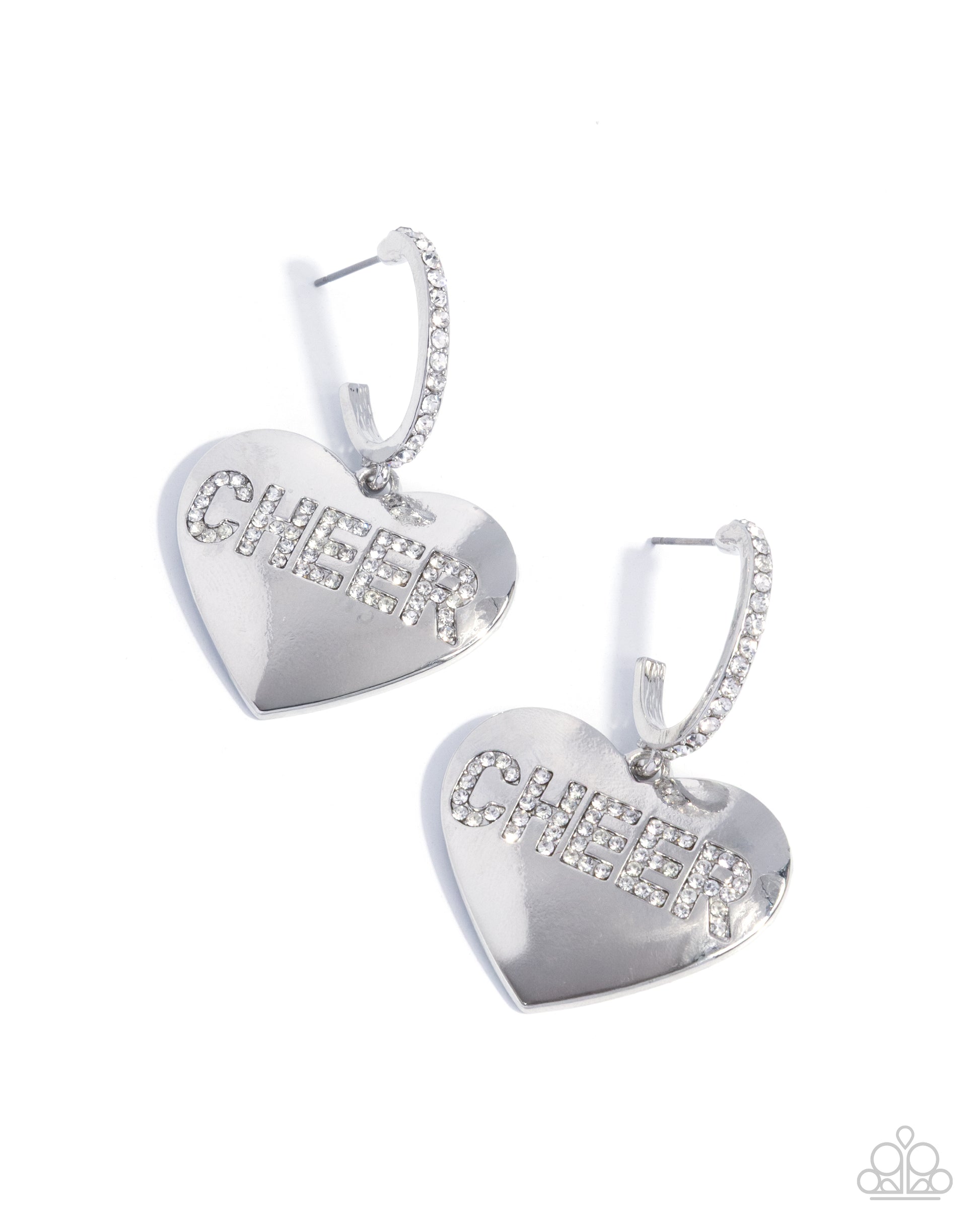 Paparazzi Shimmery Spotter - White Rhinestone "CHEER" Sport Cheerleading Silver Earring E2417