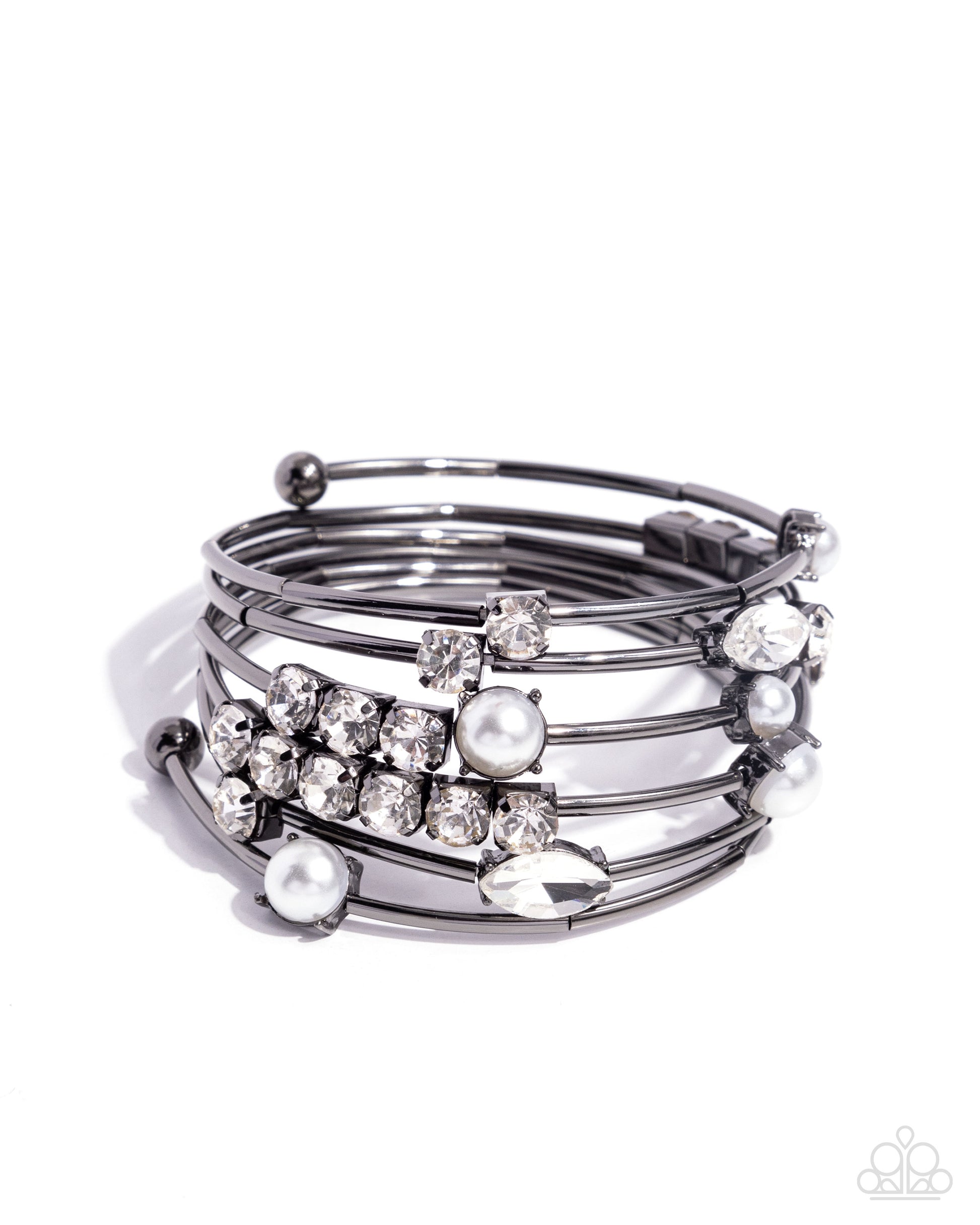 Showtime Sparkle - Black Gunmetal, White Gem & Pearl Coil Bracelet Paparazzi B2006