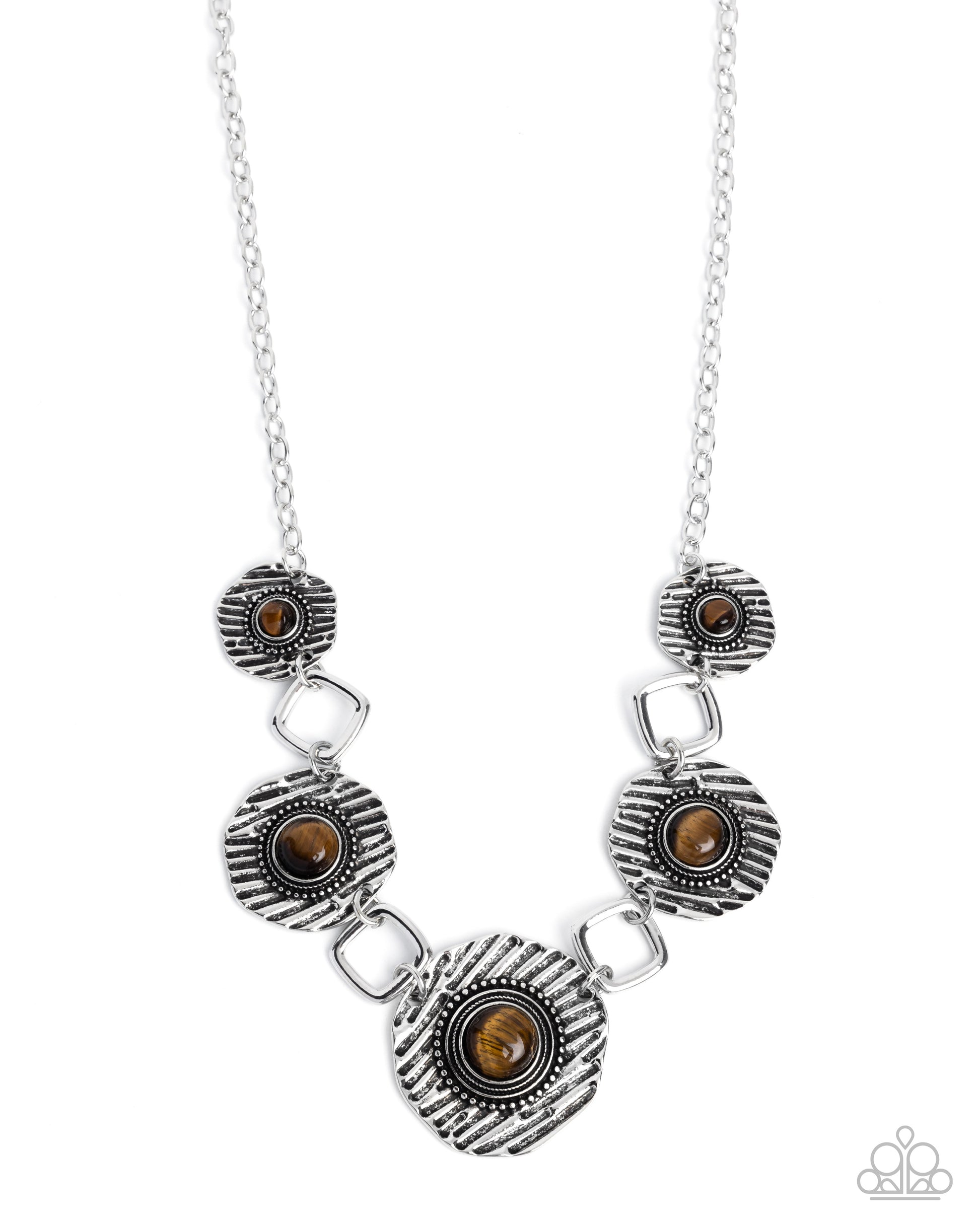 Skewed Squares - Brown Tiger's Eye Stone Silver Necklace Paparazzi N3562