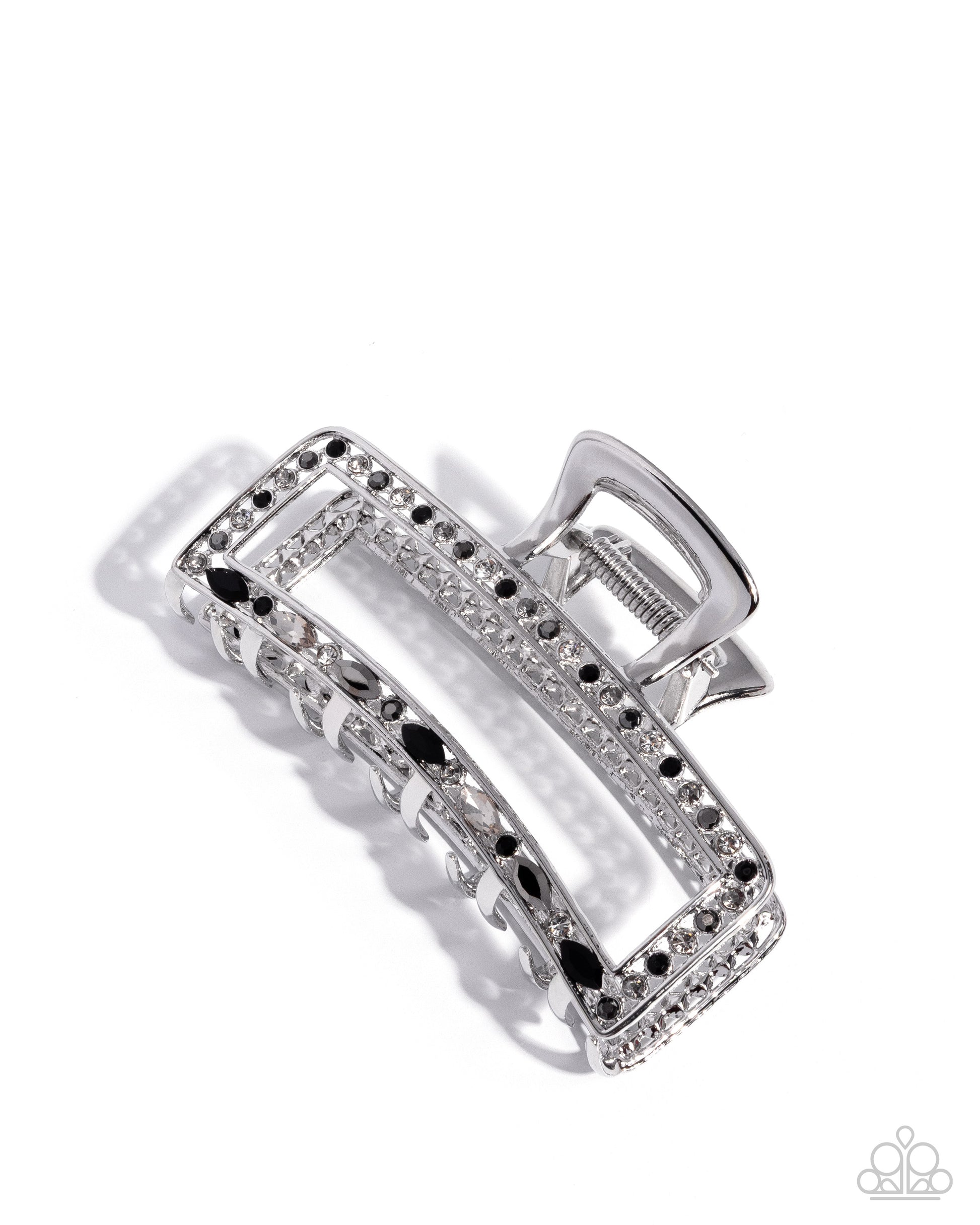 Slow It Down - Black, Hematite, White & Smoky Rhinestone & Gem Silver Metal Hair Claw Clip H0211