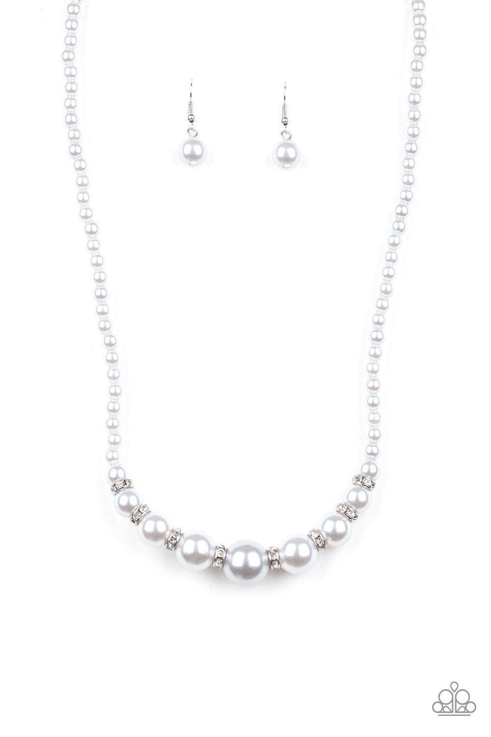 SoHo Sweetheart Silver Pearl White Rhinestone Necklace Paparazzi N0383