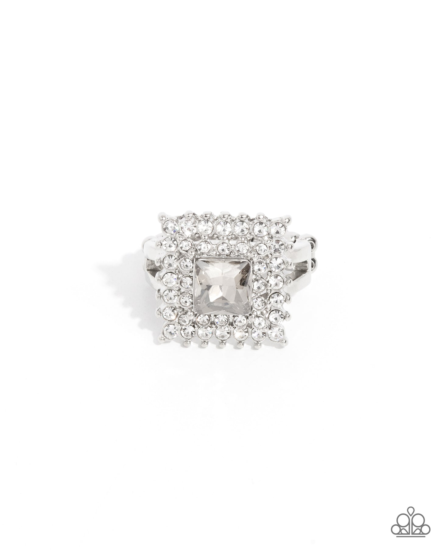 Sovereign Square - Silver Square Frame & White Rhinestone Ring Paparazzi R0880