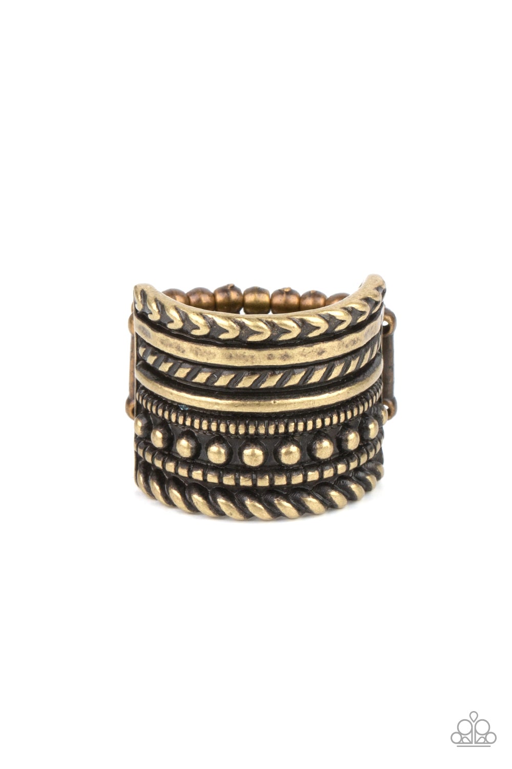 Layers of textured rows stack together in a bold display over the finger. Features a stretchy band for a flexible fit.