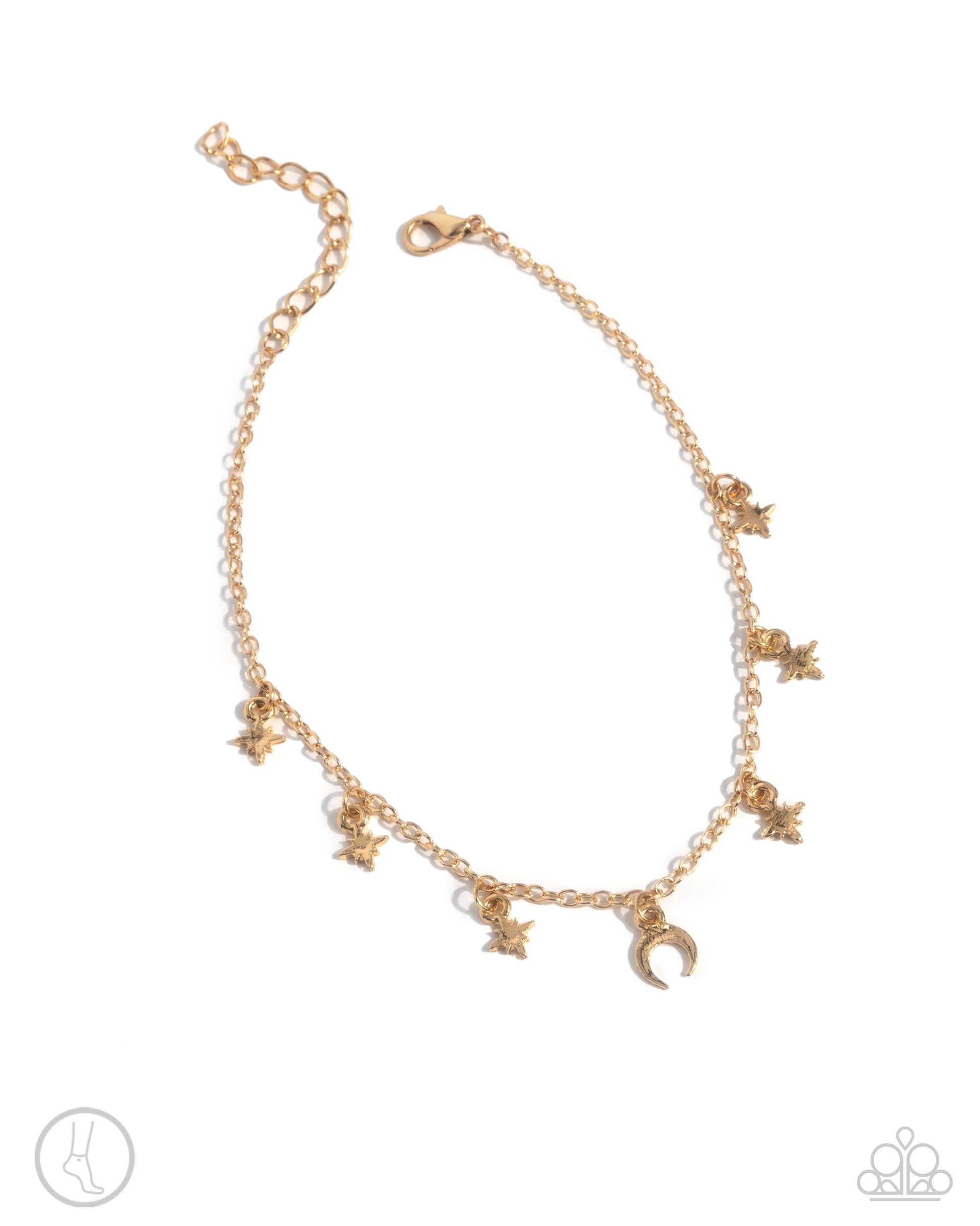 Stargazing Night - Gold Star, Moon Charm Anklet Paparazzi B2054