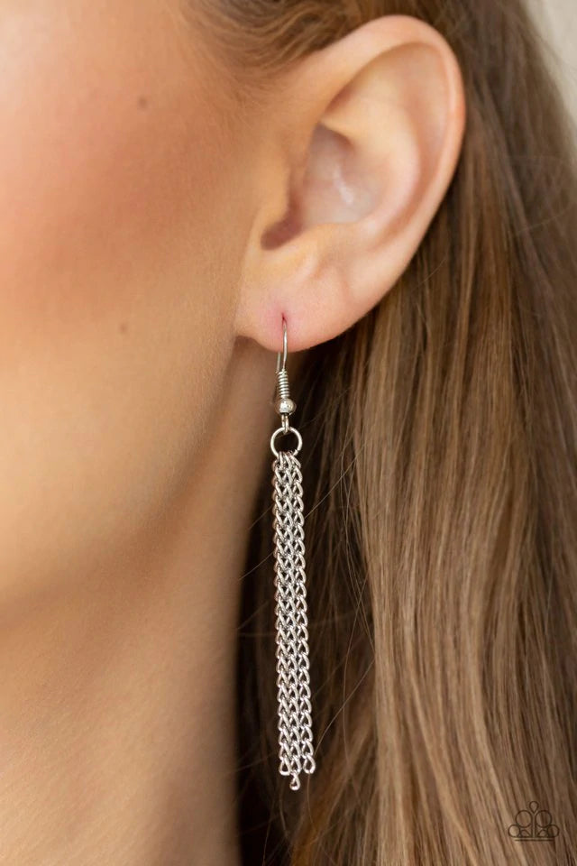 Infused with a shimmery silver chain fringe, a row of black beads is threaded along a silver rod that is fitted in place inside the center of an airy silver ring. The colorful pendant swings from the bottom of a lengthened silver chain for a trendy tribal look. Features an adjustable clasp closure.