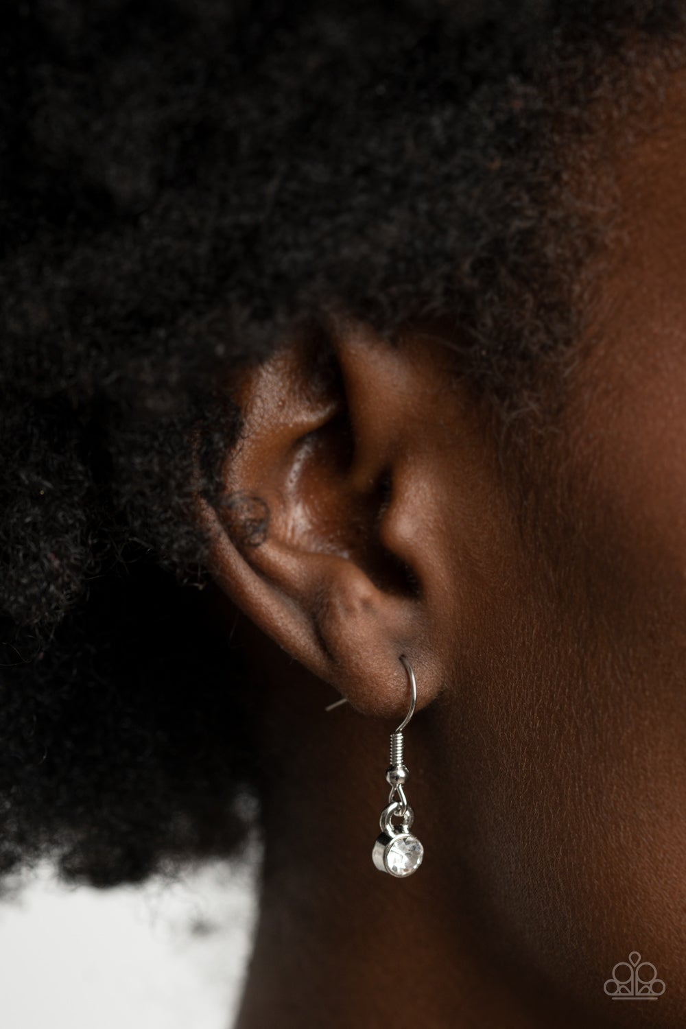 Bordered in glassy white rhinestones, a faceted blue bead dotted frame gives way to a curtain of shimmery silver chains, creating a glamorous pendant. Features an adjustable clasp closure.